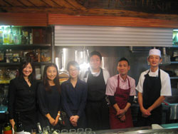 はすのみさんのスパイスにシナモンを使った豚肉ともち米のハスの葉包み蒸しは、イル・ギッツィアーノの赤ワイン テヌータ・ディ・ギッツィアーノの樽のニュアンスにピッタリ。飯物と赤ワインがこんなに合うなんてびっくりです。いのししの出汁をとったミズオチさんのメイン料理、岡山産猪肉のサルシッチャ 赤ワインソースは、しっかりと深みのある マッキオーレのボルゲリ・ロッソを合わせてまったりと。
