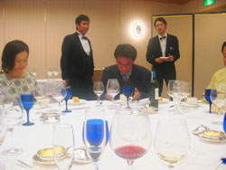ホテルグランヴィア岡山の小宴会場にて、お客様主催のワイン会。異なる業種の方々が参加されていて、毎回同じメンバーで半年ごとにお会いし、ワインを楽しみながら情報交換をしています。
