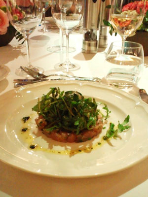 写真の前菜マグロのタルタルとプリューレ・リシーヌの白が相性良かった。