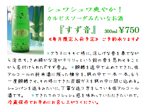 ■シュワシュワ~っと爽やかに弾けるキュートなお酒 「すず音」♪
