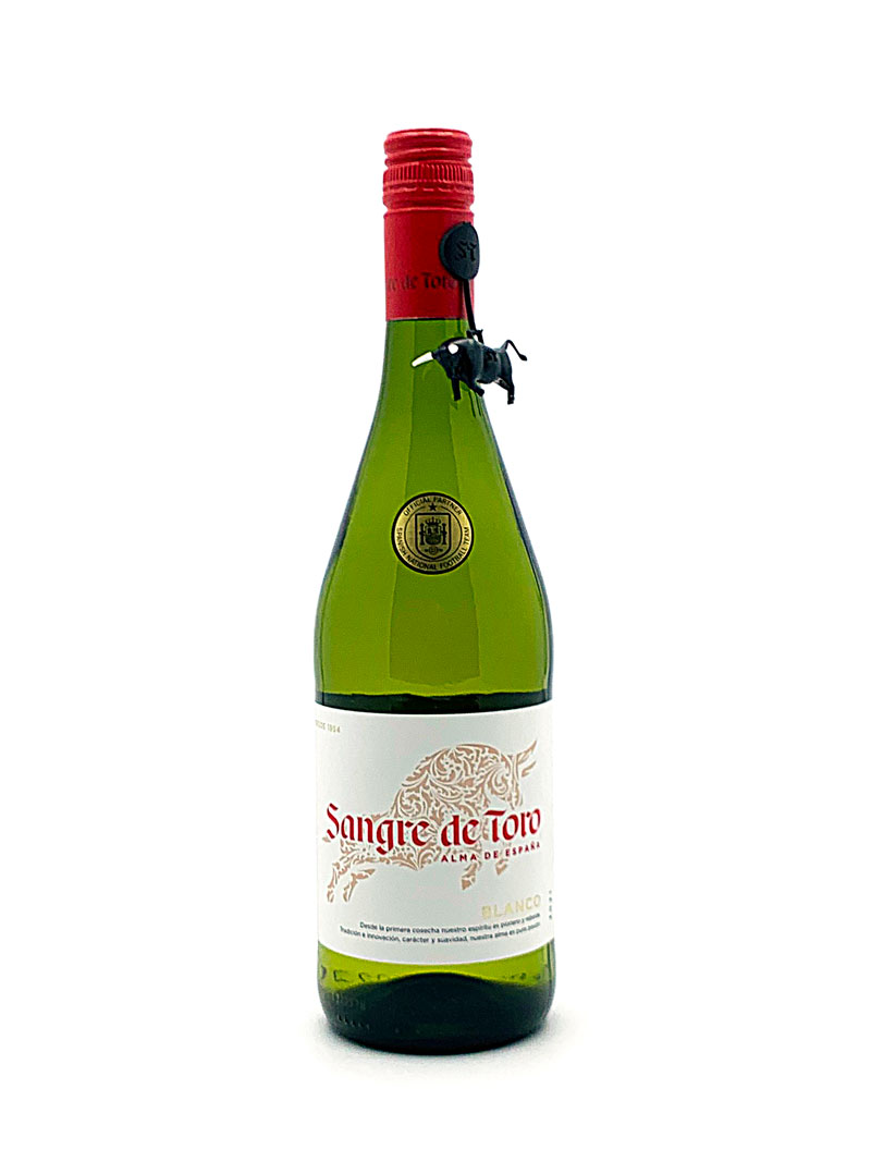 ギリシャ神話に登場する雄牛のマスコットでおなじみの「サングレ・デ・トロ」シリーズの白。優雅で華やかな香りを持つスペインの伝統品種パレリャーダから造られ、リンゴや桃のような果実味と白い花やシトラスのような爽やかな香り。フレッシュですっきりエレガントな味わいの辛口白ワイン。
