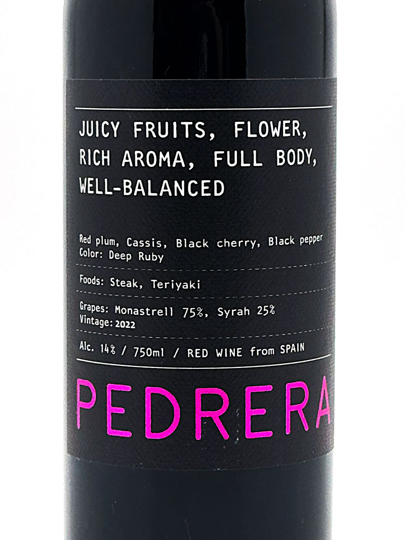 フミーリャ特産のモナストレル(ムールヴェードル)種の肉厚な果実をシラーのがっしりとした骨格と緊張感が絶妙のバランスで支えるパワフルな赤ワイン。熟した赤い果実の香りにフローラルかつスパイシーなヒント。凝縮した完熟果実の中に細かいタンニンがよく溶け込み、味わいに厚みをもたらしてます。