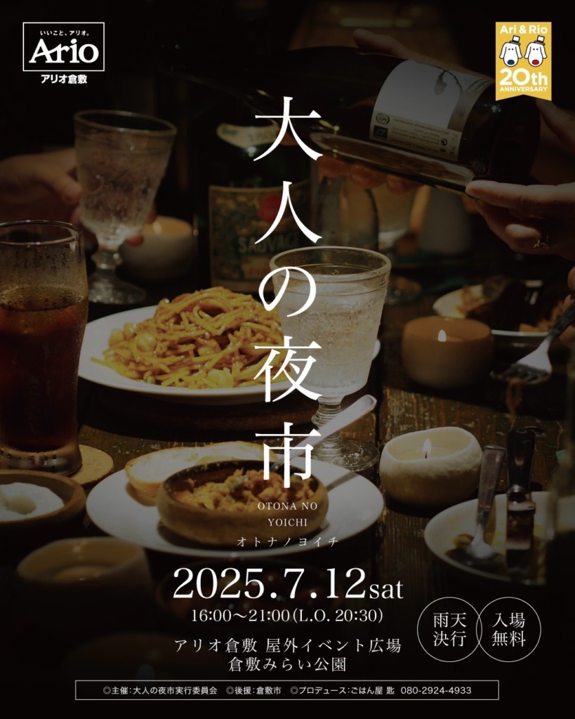 7/12(土)大人の夜市に今年も登場! in アリオ倉敷