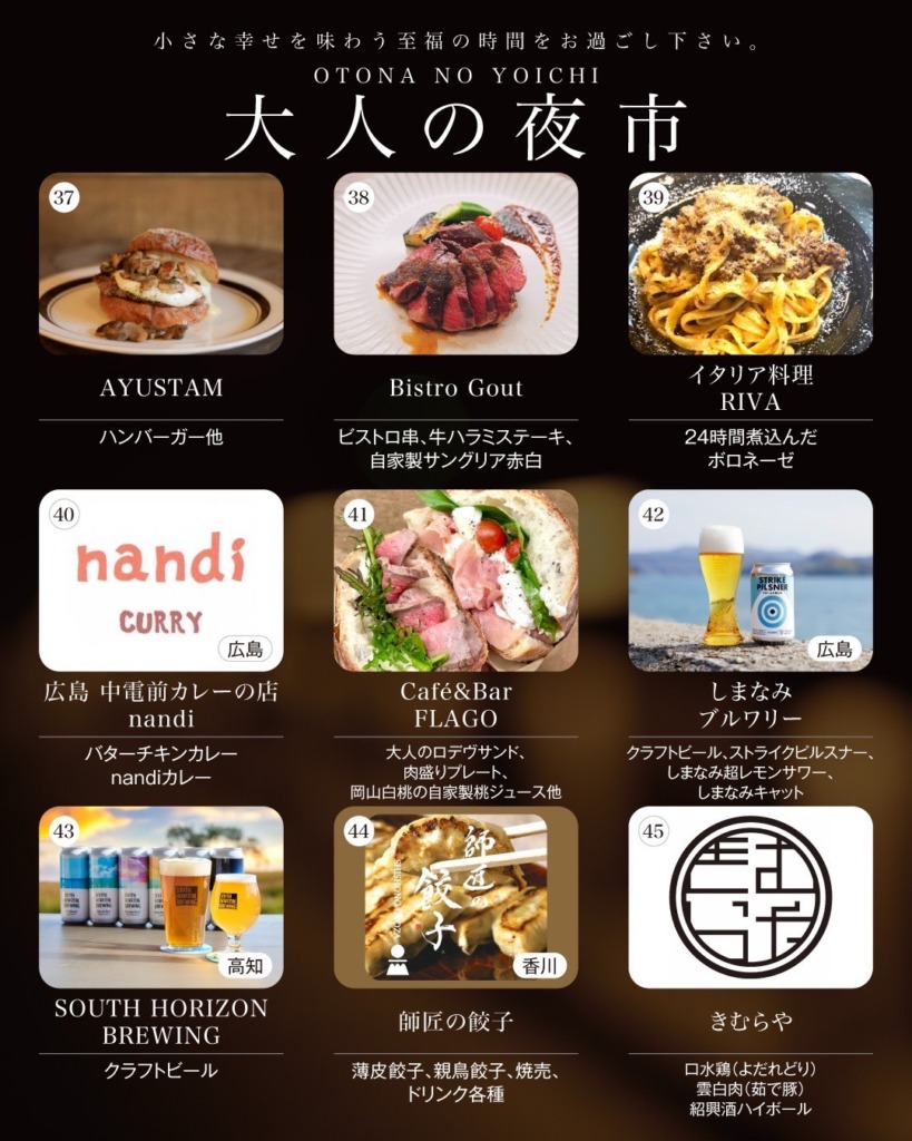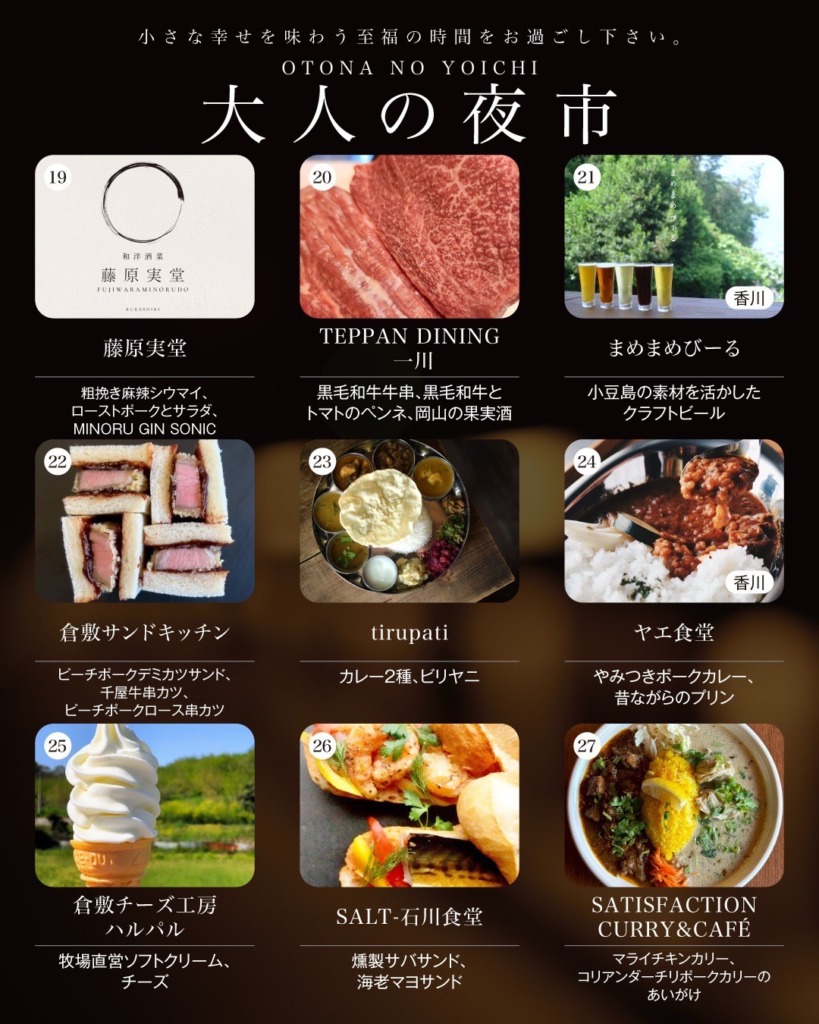岡山の人気飲食店が集まる「大人の夜市」は、毎年多くの方でにぎわう大人気イベント。