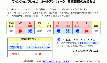 いつもワインショップしんじをご利用いただき、ありがとうございます。皆様ご無事でしょうか?洪水や事故、雨漏りなど、被害を受けられた皆様、お見舞い申し上げます。当店では雨漏り以外の被害はなく営業していますが、本日7/7(土)は、大雨の影響によりインダストリーのバゲットの入荷をお休…