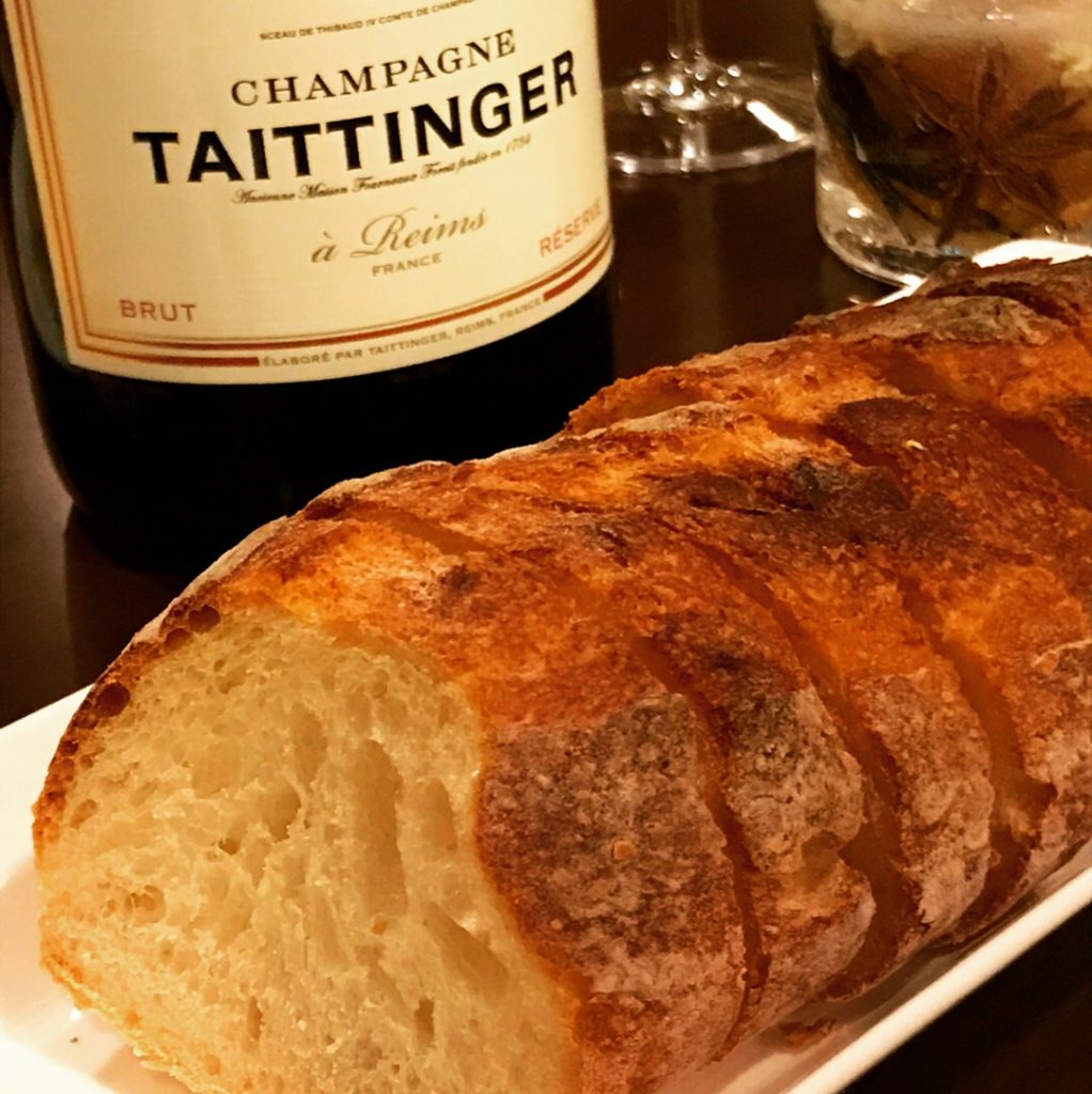 皮はパリッと香ばしく、中はもちもちのINDUSTRYのバゲットは、ワインのお供にピッタリです。